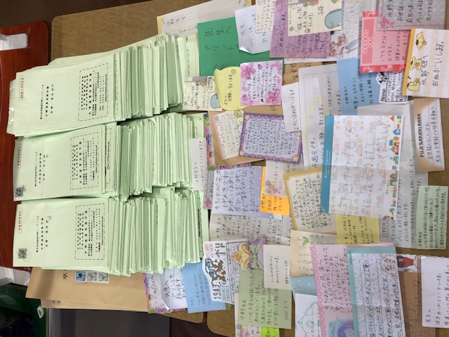 生徒からのプリントが届くのを待ちわびた日や一日中採点に明け暮れる日もありました。465通は生徒其々が一生懸命に家庭での練習に取り組んでくれた姿と感じています。生徒全員に大きな拍手を送りたいと思います。