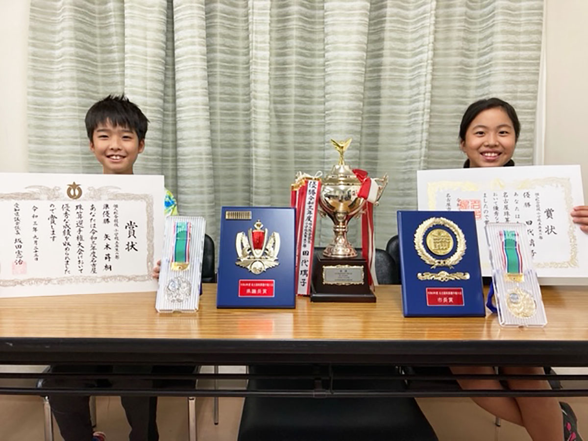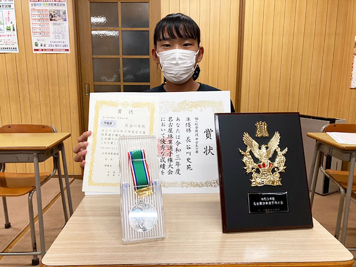 お知らせ 2021年10月のおたより 令和3年9月23日 日本珠算連盟名古屋支部主催の令和三年度名古屋珠算選手権大会が各教室にて実施されました。 小学校2年生から高校生までの学園過去最多選手30名が出場し、練習の成果を大いに発揮出来た大会となりました。 選手の皆さん胸を張って、次の大会に向けて練習していきましょう。 中学生の部準優勝 長谷川史苑さん 小学校5年生の部優勝 田代璃子さん 準優勝 矢木蒔桐さん 両者満点により決勝戦の結果僅差で勝敗が決まりました。